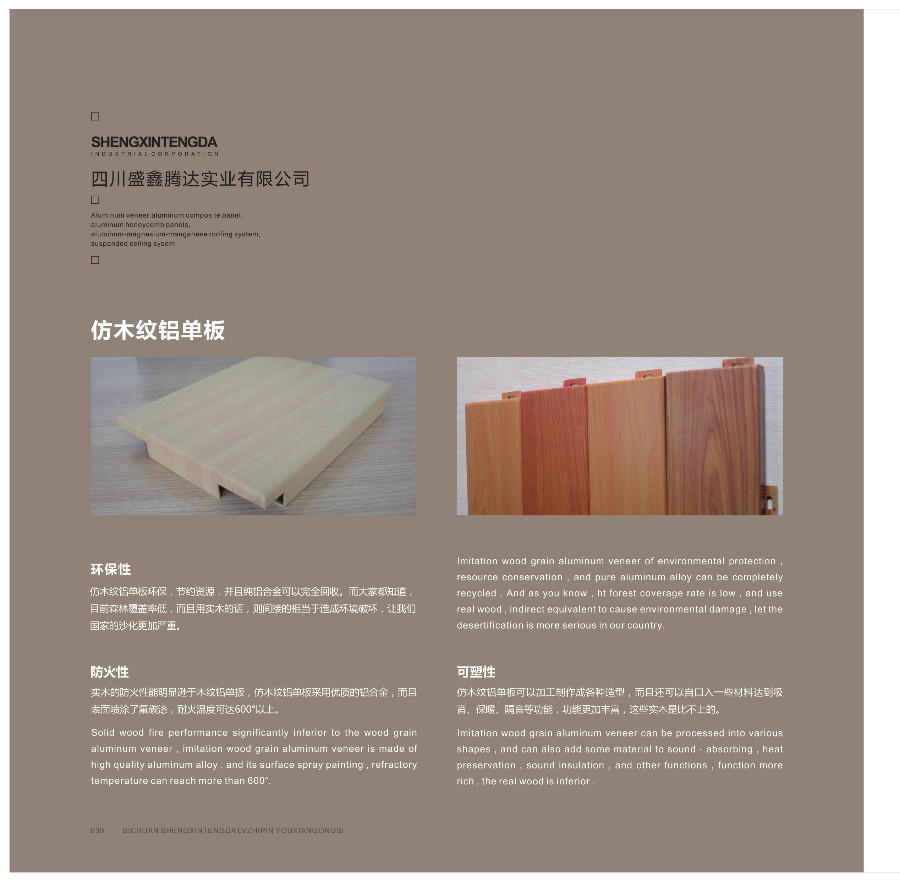 實(shí)?的防?性能明顯遜于?紋鋁單板,仿?紋鋁單板采?優(yōu)質(zhì)的鋁合?,?且表?噴涂了氮碳漆,耐?溫度可達(dá)600°以上.